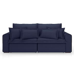 sofá 3 lugares retrátil e reclinável cannes linho bouclé azul 220 cm - Azul Petróleo