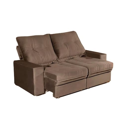 Sua estrutura é fabricada em madeira de eucalipto tratada, proporcionando resistência e durabilidade. O revestimento possui o toque macio do tecido veludo luxo e os braços acolchoados. O assento retrátil conta com espuma D28 e molas em toda a extensão, garantindo firmeza e conforto. O encosto reclinável é 100% preenchido com fibra siliconada, ideal para relaxar, enquanto os pés em MDF completam o visual moderno e elegante.