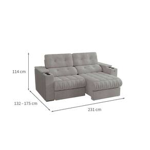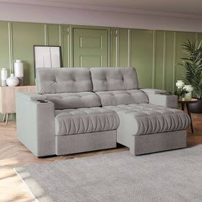 sofá 3 lugares retrátil e reclinável premier molas bouclé cinza 231 cm