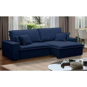 sofá 3 lugares retrátil e reclinável sarov veludo azul - Azul Petróleo