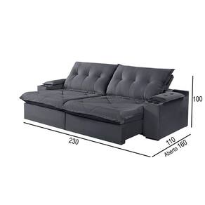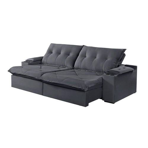 Sofá 3 Lugares Retrátil Martins M-163 Com Acessórios Veludo Grafite