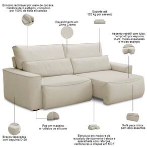 Sofá 3 Lugares Retrátil Reclinável Para Sala De Estar 250cm Odilon F04 Linho Creme - Lyam Decor