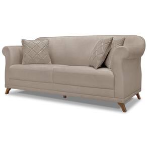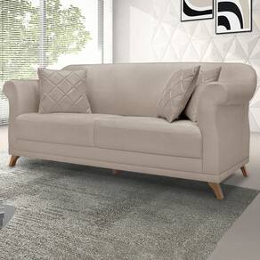 Sofa 3 Lugares Retro Polo 200cm Com Almofada Linho Areia Ezz - Bege Médio