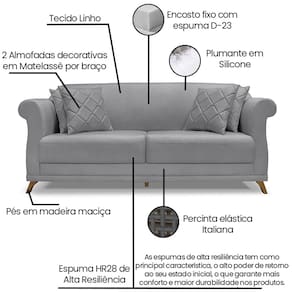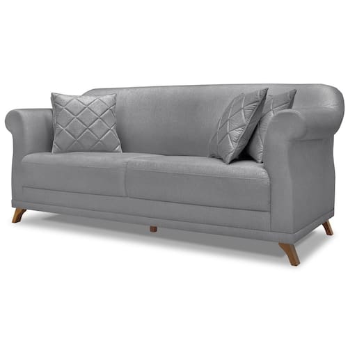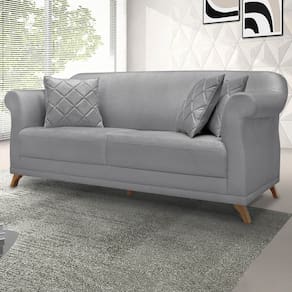 Sofa 3 Lugares Retro Polo 200cm Com Almofada Linho Cinza Ezz