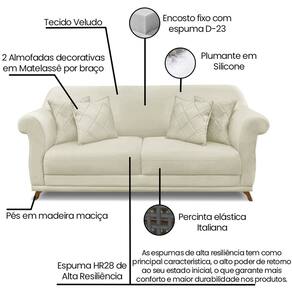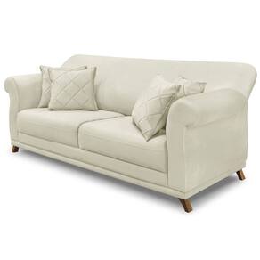 Sofa 3 Lugares Retro Polo 200cm Com Almofada Veludo 2221 Ezz - Bege