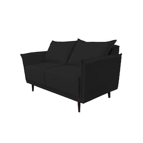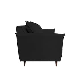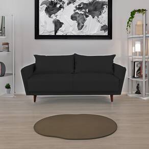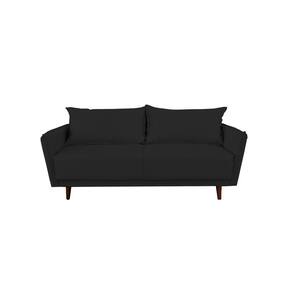 Sofá 3 Lugares Veludo Preto Pietro Base em Madeira Maciça