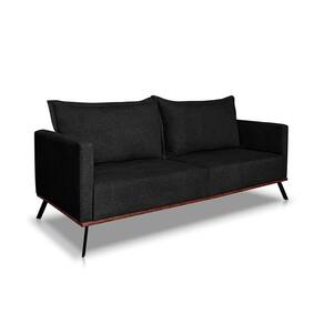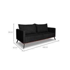 Sofá 3 Lugares Zeus Linho Bouclê Preto 180 cm - Cinza