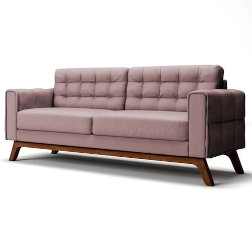 Sofá 300cm 4 Lugares Sandero C-304 Veludo Rosê - Domi - Rosa