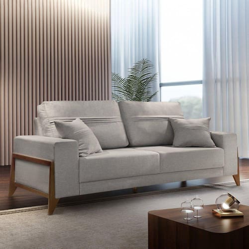 O Sofá M130 é um exemplo de estofado confortável. Além de ser um modelo totalmente moderno ele é ideal para você que procura um sofá que tenha um visual deslumbrante e que marque presença no ambiente. Além de toda a sua beleza e conforto o sofá tem como sua principal característica a qualidade, é fabricado no Brasil com materiais de alto padrão aliado a tecnologia de ponta. Acompanha Almofadas extras: 02 Almofada do assento: Fixa Almofada do encosto: Removível Altura do assento até o chão: 53 Altura do Encosto: 36 Altura dos Pés: 13 Ambiente Principal: Sala de Estar Complexidade da Montagem: Cor: Linho/Cinza Claro Cor do Produto: Linho/Cinza Claro Densidade do Assento: D-28 Densidade do Encosto: D-18 Enchimento do Assento: Espuma Enchimento do Encosto: Fibra Siliconada Estilo de Braço: Braços Largos Firmeza do Assento: Firme Informações Complementares: Itens Inclusos: 1 Sofá Largura do Sofá Maior: Linha ou Coleção: Manual de Especificação Técnica: Manual de Montagem e Instalação: Material dos Pés: Base e pés em madeira Montagem Flex: Necessita Montagem: Não Origem do Produto: Nacional Peso: 90 Pet Friendly: Não Possui Percintas Elásticas: Sim Possui Pés: 03 Possui Rodízio: Não Profundidade Quando Estendido: Recomendações de Uso, Manutenção e Limpeza: Limpar com flanela limpa e seca. Não usar produtos abrasivos. Resistente à Chuva: Não Revestimento do Braço: Linho Rodízio com Trava: Sistema de Montagem: Suporta Até (kg): 120 Tamanho: Tecido Predominante: Linho Tipo de Encosto: Fixo Tipo de Mola: Molas Bonnel