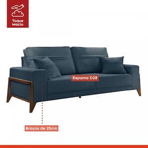Além de toda a sua beleza e conforto o sofá tem como sua principal característica a qualidade, é fabricado no Brasil com materiais de alto padrão aliado a tecnologia de ponta. Produto Montado: Não Almofada do assento: Fixa Almofada do encosto: Removível Altura do assento até o chão: 53.0000 Altura do Encosto: 36 cm Altura dos Pés: 13 cm Ambiente Principal: Sala de Estar codigo_ean: 7909903007983 Cor: Linho/Azul Petroleo Densidade do Assento: D-28 Enchimento do Assento: Espuma Enchimento do Encosto: Fibra Siliconada Estilo de Braço: Braços Largos Material dos Pés: Madeira Necessita Montagem: Não Origem do Produto: Nacional Peso: 90 kg Pet Friendly: Não Possui Percintas Elásticas: Sim Recomendações de Uso, Manutenção e Limpeza: Limpar com flanela limpa e seca. Não usar produtos abrasivos. Tecido Predominante: Linho Tipo de Mola: Molas Bonnel