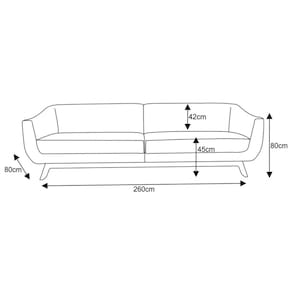 Dimensões do Produto Largura: 260 cm. Altura: 89 cm. Profundidade: 84 cm. Peso: 50 Kg.