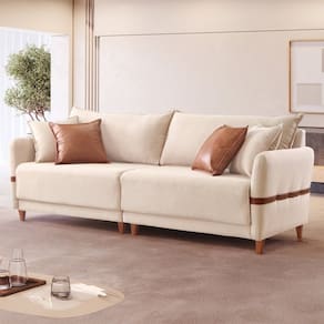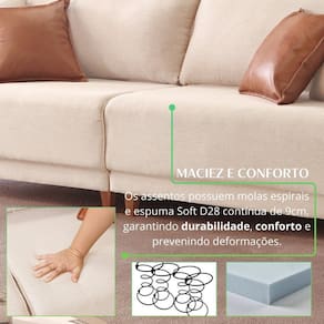 Este sofá estofado em linho exala sofisticação e conforto, complementado por um elegante detalhe em courino nos braços. Duas almofadas em linho proporcionam suavidade e aconchego, enquanto duas almofadas em courino acrescentam um toque moderno e distinto. Ideal para quem busca um mobiliário que une estilo e funcionalidade, é a escolha perfeita para qualquer ambiente. Produto Montado: Sim Acompanha Almofadas extras: 04 Almofada do assento: Fixa Almofada do encosto: Removível Altura do assento até o chão: 45.0000 Altura do Encosto: 94 cm Ambiente Principal: Sala de Estar codigo_ean: 7900288206695 Complexidade da Montagem: Baixa: pode ser montado por uma pessoa sozinha Cor: Bege / Marrom Cor do Produto: Bege / Marrom Itens Inclusos: 1 Sofá, 4 Almofadas e Kit Ferragens Linha ou Coleção: Living Canela Marca: Lufer Estofados Material dos Pés: Madeira Maciça Necessita Montagem: Sim Peso: 63 kg Pet Friendly: Não Possui Percintas Elásticas: Não Possui Pés: 08 Possui Rodízio: Não Recomendações de Uso, Manutenção e Limpeza: Um pano seco e um pano levemente umedecido, evitar alvejantes e produtos de limpeza. Sistema de Montagem: Encaixe. Suporta Até (kg): 120 kg Tecido Predominante: Linho Tipo de Encosto: Fixo Tipo de Sofá: Sofá Comum