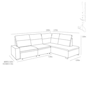 Dimensões: Altura: 100 cm Largura: 280/210 cm Profundidade: 110 e 145 cm Peso: 89,40 kg