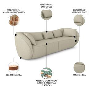 Sofá 4 Lugares 292cm Orgânico Pé Madeira Yume Bouclê Bege Z55 - Mpozenato