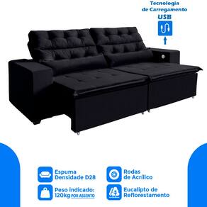 Ele possui encosto reclinável em cinco posições, proporcionando-lhe mais conforto na hora do descanso. E não para por aí: seu assento retrátil conta com espuma D28 e molas espirais, transformando seu sofá em uma verdadeira cama para assistir seu filme preferido.