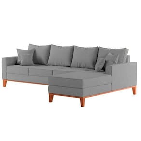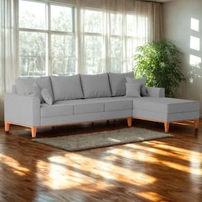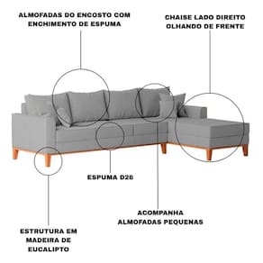 Montagem: O produto vai montado, apenas rosquear os pés e encaixar a Chaise no Sofá na peça lateral.