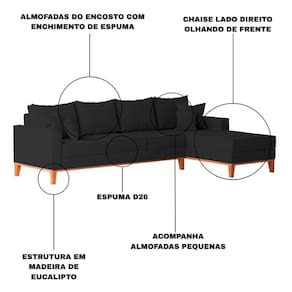Montagem: O produto vai montado, apenas rosquear os pés e encaixar a Chaise no Sofá na peça lateral.