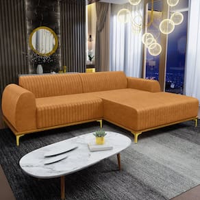 O Sofá com Chaise Direito Para Sala de Estar Molino 255cm D02 da Lyam Decor, exala formosura e elegância! Excelente opção para dispor em sua sala de estar ou espera, recepção, hall de entrada, dormitório, qualquer área de circulação ou antessala entre um cômodo e outro, as possibilidades de combinação são infinitas. Seu protagonismo é notório, sem sombra de dúvidas é perfeita para qualquer ambientação que desejar colocá-la. Com sua resistente estrutura, na cor castanho com detalhes em dourado, deixarão sua decoração ainda mais sofisticada. Oferecendo máximo conforto sem deixar de transmitir todo a magnitude que seu lar merece!