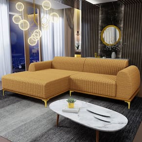 O Sofá com Chaise Esquerdo Para Sala de Estar Molino 255cm D02 da Lyam Decor, exala formosura e elegância! Excelente opção para dispor em sua sala de estar ou espera, recepção, hall de entrada, dormitório, qualquer área de circulação ou antessala entre um cômodo e outro, as possibilidades de combinação são infinitas. Seu protagonismo é notório, sem sombra de dúvidas é perfeita para qualquer ambientação que desejar colocá-la. Com sua resistente estrutura, na cor castanho com detalhes em dourado, deixarão sua decoração ainda mais sofisticada. Oferecendo máximo conforto sem deixar de transmitir todo a magnitude que seu lar merece!