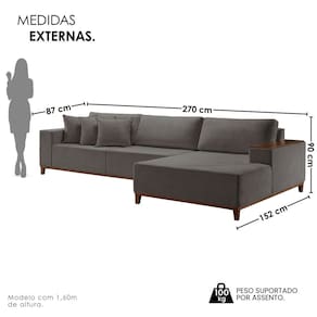 Seu design clean e as linhas bem definidas se encaixam perfeitamente em ambientes modernos, enquanto a chaise permite versatilidade na disposição dos móveis. O sofá Grécia é a escolha perfeita para quem busca um espaço aconchegante e sofisticado, ideal para momentos de descanso e convívio. Produto Montado: Sim Acompanha Almofadas extras: 03 Almofada do assento: Fixa Almofada do encosto: Removível Altura do assento até o chão: 40.0000 Altura do Encosto: 50 cm Altura dos Pés: 13 cm Ambiente Principal: Sala de Estar codigo_ean: 7900288202208 Complexidade da Montagem: Baixa: pode ser montado por uma pessoa sozinha Cor: Cinza Escuro Cor do Produto: Cinza Escuro Itens Inclusos: 1 Sofá, 3 Almofadas e Kit Ferragens Linha ou Coleção: Grécia Manual de Montagem e Instalação: https://product-hub-prd.madeiramadeira.com.br/275142599/documents/d95e935b-ce76-4200-8ffd-ac56c057f959852ee9cf642ed56d1753375340.pdf Marca: Conceito Estofados Material dos Pés: Madeira Necessita Montagem: Sim Origem do Produto: Nacional Peso: 100 kg Pet Friendly: Não Possui Percintas Elásticas: Sim Possui Pés: 09 Possui Rodízio: Não Recomendações de Uso, Manutenção e Limpeza: Limpar com pano limpo e seco Revestimento do Braço: Madeira Sistema de Montagem: Parafusos Suporta Até (kg): 320 kg Tecido Predominante: Linho Tipo de Encosto: Fixo Tipo de Sofá: Sofá com Chaise Marca: Não Informado