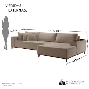 O sofá Grécia é uma peça contemporânea que combina conforto e funcionalidade, ideal para qualquer sala de estar. Com uma chaise integrada, oferece um espaço amplo para relaxar e se acomodar com estilo. A base de madeira no braço da chaise não só proporciona uma estética elegante, mas também garante durabilidade e resistência.