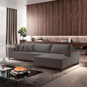 O sofá Grécia é uma peça contemporânea que combina conforto e funcionalidade, ideal para qualquer sala de estar. Com uma chaise integrada, oferece um espaço amplo para relaxar e se acomodar com estilo. A base de madeira no braço da chaise não só proporciona uma estética elegante, mas também garante durabilidade e resistência.