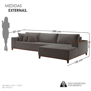Seu design clean e as linhas bem definidas se encaixam perfeitamente em ambientes modernos, enquanto a chaise permite versatilidade na disposição dos móveis. O sofá Grécia é a escolha perfeita para quem busca um espaço aconchegante e sofisticado, ideal para momentos de descanso e convívio. Produto Montado: Sim Acompanha Almofadas extras: 03 Almofada do assento: Fixa Almofada do encosto: Removível Altura do assento até o chão: 40.0000 Altura do Encosto: 50 cm Altura dos Pés: 13 cm Ambiente Principal: Sala de Estar codigo_ean: 7900288202215 Complexidade da Montagem: Baixa: pode ser montado por uma pessoa sozinha Cor: Cinza Escuro Cor do Produto: Cinza Escuro Itens Inclusos: 1 Sofá, 3 Almofadas e Kit Ferragens Linha ou Coleção: Grécia Manual de Montagem e Instalação: https://product-hub-prd.madeiramadeira.com.br/470981155/documents/637f68cb-7c6c-4c5b-b20b-2570e6e35421852ee9cf642ed56d1753375340.pdf Marca: Conceito Estofados Material dos Pés: Madeira Necessita Montagem: Sim Origem do Produto: Nacional Peso: 100 kg Pet Friendly: Não Possui Percintas Elásticas: Sim Possui Pés: 09 Possui Rodízio: Não Recomendações de Uso, Manutenção e Limpeza: Limpar com pano limpo e seco Revestimento do Braço: Madeira Sistema de Montagem: Parafusos Suporta Até (kg): 320 kg Tecido Predominante: Linho Tipo de Encosto: Fixo Tipo de Sofá: Sofá com Chaise Marca: Não Informado