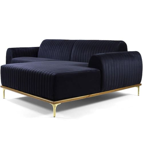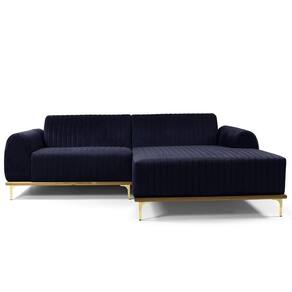 Sofá 4 Lugares Com Chaise Direito Para Sala Molino 255 Cm D02 Veludo Azul Marinho C-287 - Lyam Decor O Sofá 4 Lugares com Chaise Direito Para Sala de Estar Molino 255cm D02 Veludo Azul Marinho C-287 - Lyam Decor exala formosura e elegância! Excelente opção para dispor em sua sala de estar ou espera, recepção, hall de entrada, dormitório, qualquer área de circulação ou antessala entre um cômodo e outro, as possibilidades de combinação são infinitas. Seu protagonismo é notório, sem sombra de dúvidas é perfeita para qualquer ambientação que desejar colocá-la. Com sua resistente estrutura, na cor castanho com detalhes em dourado, o encosto e assento revestidos em veludo, deixarão sua decoração ainda mais sofisticada. Oferecendo máximo conforto sem deixar de transmitir todo a magnitude que seu lar merece! Dimensões do produto (L x A x P) 255 x 76 x 150 cm Medidas Internas: Altura do assento: 44 cm Largura do assento: 140 cm Profundidade do assento: 54 cm Profundidade externa (lado sem Chaise): 85 cm Altura livre do encosto: 35 cm Profundidade livre de assento (Chaise): 119 cm Largura Chaise: 115 cm Largura do braço: 25 cm Altura interna do braço: 19 cm Altura externa do braço: 60 cm Altura dos pés: 16 cm Características: Estrutura em madeira de eucalipto. Partes em MDF ou OSB; Revestimento Veludo Azul Marinho; Base em madeira envernizada na cor castanho com pés de alumínio na cor D'Ouro; Assento fixo com espuma D-28 HR sobre chapas de OSB; Encosto fixo com espuma D-23 sobre percintas elásticas; Braço com espuma D-23; Chaise do lado direito do sofá. Suporta até 120 Kg por assento. - Por se tratar de estofado as medidas podem ter uma pequena variação de até 3 cm. - A tonalidade do produto real poderá ter ligeira variação devido o lote de tecidos. Observações importantes: - Produto para uso residencial em ambiente interno, não devendo ficar exposto diretamente ao sol, calor e umidade excessivos. - Pode haver alguma diferença de tonalidade entre a imagem e o produto real, por conta do tratamento de imagens e a calibração de cores do seu monitor. - As imagens são meramente ilustrativas, não acompanham objetos de decoração e eletrônicos. - Ao receber a mercadoria, o cliente deve verificar as condições da embalagem, caso haja alguma não assine o de . - Montagem, desmontagem e outras instalações serão de responsabilidade do cliente. Eventuais despesas são de responsabilidade do comprador. - Confira as dimensões do produto e certifique-se de que passará normalmente por supostos elevadores, portas, escadas e/ou corredores de sua residência. Altura Montado: 76 | Largura Montado: 255 | Profundidade Montado: 150