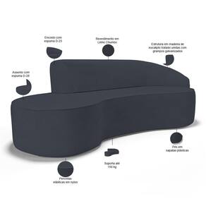 Sofá 4 Lugares Curvo Sala De Estar Living Firenze Direito D02 Linho Chumbo 260 Cm D-465 - Lyam