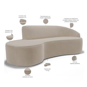 Sofá 4 Lugares Curvo Sala de Estar Living Firenze Direito D02 Veludo Champagne 280 cm C-68 - Lyam - Bege Claro