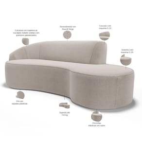 O Sofá Firenze é uma excelente opção para dar um toque de elegância e sofisticação à sua sala de estar, living, hall de entrada, eventos ou espaços comerciais. Seu formato curvo em meia lua cria um visual encantador juntamente com o encosto estofado, proporcionando um toque de originalidade e modernidade ao ambiente. Além disso, sua estrutura robusta e durável garante conforto e resistência, garantindo que o sofá possa ser desfrutado por muito tempo. O Sofá Firenze é o elemento que falta para transformar o seu espaço em um lugar mais charmoso e aconchegante! Seja qual for o ambiente em que você deseja adicionar um toque de estilo e conforto, o sofá com design curvo é a opção certa. Sua beleza única e funcionalidade prática combinam perfeitamente, tornando-o um investimento valioso para qualquer espaço.