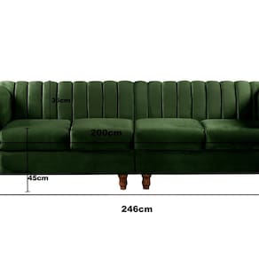 É necessário que haja uma ou mais pessoas no local para receber, desembalar, e conferir o produto. Produto Montado: Sim Acompanha Almofadas extras: Não Almofada do assento: Removível Almofada do encosto: Não Possui Altura do assento até o chão: 45.0000 Altura do Encosto: 80 cm Ambiente Principal: Sala de Estar codigo_ean: 7900288192516 Complexidade da Montagem: Baixa: pode ser montado por uma pessoa sozinha Cor: Verde Cor do Produto: Verde Informações Complementares: 120Kg por Acento Itens Inclusos: 1 Sofá, Manual de Montagem e Kit Ferragens Linha ou Coleção: Realeza Chesterfield Marca: BELLA DECOR Material dos Pés: Madeira Maciça Necessita Montagem: Sim Origem do Produto: Importado Peso: 82 kg Pet Friendly: Não Possui Percintas Elásticas: Sim Possui Pés: 08 Possui Rodízio: Não Recomendações de Uso, Manutenção e Limpeza: Limpeza e cuidados: pode ser utilizado aspirador de pó, escova com cerdas macias ou limpeza a seco. Não utilizar produtos químicos, abrasivos ou limpeza a vapor. Evitar exposição prolongada ao sol. Sistema de Montagem: Fixar os Pés Suporta Até (kg): 120 kg Tecido Predominante: Suede Tipo de Encosto: Fixo Tipo de Mola: Molas Ensacadas (Molas ensacadas) Tipo de Sofá: Sofá Comum