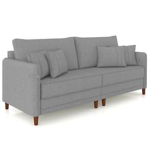 Com assento e encosto fixos, o Sofá Para Sala ainda conta com almofadas decorativas com fibra siliconada, pés em madeira e estrutura bipartida que facilita o .