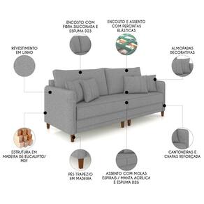 Sofá 4 Lugares Living 252cm Pé Madeira Zoe Linho Cinza Escuro Z08 - Mpozenato
