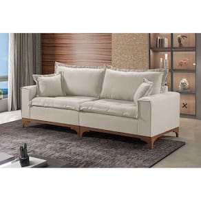 Sofá 4 Lugares Living M-47 Veludo Martins Creme Sofa 4 Lugares Living M-47 Veludo Martins Caracteristicas: Material: Veludo Requer Montagem?: Sim Acessoios inclusos: Almofadas Decorativas Acompanha Chaise?: Nao Tipo do Acento, tem Pillow Top?: Assento Fixo, Com Pillow Top De 14 Cm Densidade Espuma Assento: D-28 Possui Mola no Assento? Tipo de mola?: Sim, Molas Bonnel Possui Persinta? Tipo de Persinta: Sim, Percinta Elastica Tipo do Encosto: Encosto Fixo Amofadas do encosto Fixa ou Solta?: Encosto Fixo, Almofadas Solta Densidade Espuma Encosto: 100 Fibra Silicone Posui Pes (Sim ou Nao): Sim Quantidade de Pes: 8 Tipo de Pes (Material): Madeira Acompanha Rodizio (Sim ou Nao): Nao Materia Prima: Elcalipto Tratado Revestimento: Espuma D-28 Soft Madeira Aparelhada ou Bruta?: Aparelhada A Madeira e Tratada? (Sim ou Nao): Sim E Bipartido ou Inteirico?: Bipartido