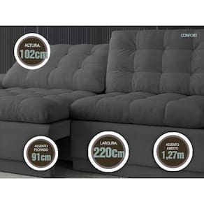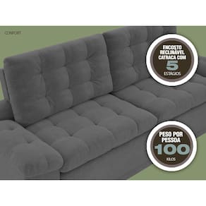 Sofá 4 Lugares Net Confort Assento Retrátil e Reclinável Grafite 2,20m (L)