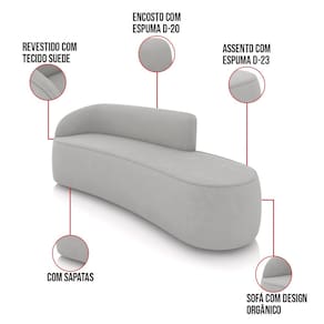 O Sofá 4 Lugares Orgânico Morgan de 220 cm, é a combinação perfeita de conforto e estilo. Com uma estrutura robusta de madeira de eucalipto e MDF, este sofá garante durabilidade e resistência. Os assentos e encostos são fixos, o encosto é preenchido com espuma D-20, proporcionando suporte ideal para suas costas, enquanto o assento com espuma D-23 oferece uma experiência de assento firme e aconchegante. O elegante revestimento em Suede na sofisticada cor Cinza é uma escolha que combina conforto com um toque de modernidade. O design orgânico remete às formas encontradas na natureza como ondas, folhas ou conchas que além de se moldarem ao corpo humano, evocam uma sensação de calma e equilíbrio. Seu formato curvo e sem braços traz um toque de modernidade, permitindo que o sofá se encaixe harmoniosamente em diversos estilos de decoração, desde o minimalista até o mais ousado. A fluidez das linhas cria um ambiente acolhedor e convidativo, perfeito para qualquer ocasião. As sapatas plásticas são pequenas proteções colocadas na base dos pés do sofá para evitar que eles risquem ou danifiquem o chão. Além de proteger o piso, essas sapatas ajudam a distribuir o peso do sofá de maneira mais uniforme. Seja para receber amigos, relaxar após um dia longo ou simplesmente adicionar um toque de elegância ao seu lar, o Sofá Orgânico é a escolha ideal. Não perca a oportunidade de elevar a decoração da sua casa com esta peça única. Adquira já o seu e descubra o que é conforto e estilo em um só lugar!