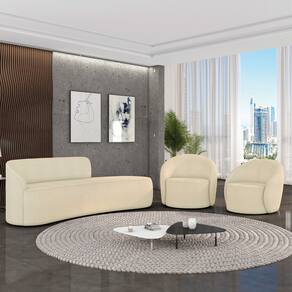 Sofá 4 Lugares Orgânico 220cm Morgan e 2 Poltronas Lua Bouclê D03 - D`Rossi - Bege