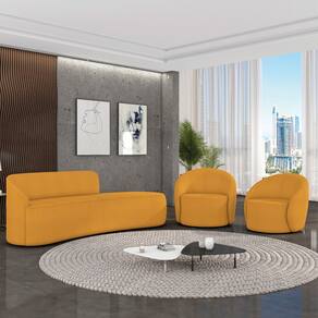 O Kit Sofá 4 Lugares Orgânico 220cm Morgan e 2 Poltronas Lua é um verdadeiro convite ao relaxamento! Ele possui um design orgânico que remete às formas encontradas na natureza que além de se moldar ao corpo humano, evoca uma sensação de calma e equilíbrio criando um espaço acolhedor e relaxante. O revestimento desse maravilhoso conjunto conta com um tecido extremamente elegante no Bouclê Mostarda, suportando em média até 300 kg de peso, podendo ser utilizado por pessoas de diferentes biotipos. A Poltrona Lua contém uma simetria artística e curvas suaves, ela contém uma Base Giratória com giro em 360 graus e uma estrutura em madeira de reflorestamento eucalipto, que garante a resistência e a sustentabilidade do produto. Ela tem um acabamento reforçado e espuma de qualidade D23, que oferece maciez e conforto. Ela contém detalhes de costura no encosto e um assento cilíndrico arredondado resultando em um acabamento perfeito conferindo muito mais valor e personalizado ao produto, oferecendo maior liberdade de movimento ao cliente. O Sofá Morgan por sua vez é uma combinação perfeita de conforto e estilo. Com uma estrutura robusta de madeira de eucalipto e MDF, este sofá garante durabilidade e resistência. Os assentos e encostos são fixos, o encosto é preenchido com espuma D-20, proporcionando suporte ideal para suas costas, enquanto o assento com espuma D-23 oferece uma experiência de assento firme e aconchegante. Seu formato curvo e sem braços traz um toque de modernidade, permitindo que o sofá se encaixe harmoniosamente em diversos estilos de decoração, desde o minimalista até o mais ousado. As sapatas plásticas são pequenas proteções colocadas na base dos pés do sofá para evitar que eles risquem ou danifiquem o chão. Além de proteger o piso, essas sapatas ajudam a distribuir o peso do sofá de maneira mais uniforme. Esse lindo conjunto pode ser utilizado em salas de estar, recepções, escritórios, lojas, espaços comerciais, ou qualquer outro espaço que você queira decorar com estilo e bom gosto. O kit Sofá Morgan e 2 Poltronas Lua é um produto que vai fazer a diferença na sua decoração e no seu bem-estar. Ele vai trazer charme, conforto e durabilidade para o seu ambiente. Corra e garanta o seu agora mesmo!