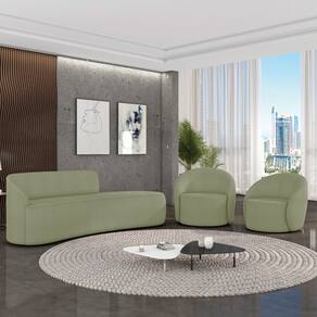 O Kit Sofá 4 Lugares Orgânico 220cm Morgan e 2 Poltronas Lua é um verdadeiro convite ao relaxamento! Ele possui um design orgânico que remete às formas encontradas na natureza que além de se moldar ao corpo humano, evoca uma sensação de calma e equilíbrio criando um espaço acolhedor e relaxante. O revestimento desse maravilhoso conjunto conta com um tecido extremamente elegante no Bouclê Pistache, suportando em média até 300 kg de peso, podendo ser utilizado por pessoas de diferentes biotipos. A Poltrona Lua contém uma simetria artística e curvas suaves, ela contém uma Base Giratória com giro em 360 graus e uma estrutura em madeira de reflorestamento eucalipto, que garante a resistência e a sustentabilidade do produto. Ela tem um acabamento reforçado e espuma de qualidade D23, que oferece maciez e conforto. Ela contém detalhes de costura no encosto e um assento cilíndrico arredondado resultando em um acabamento perfeito conferindo muito mais valor e personalizado ao produto, oferecendo maior liberdade de movimento ao cliente. O Sofá Morgan por sua vez é uma combinação perfeita de conforto e estilo. Com uma estrutura robusta de madeira de eucalipto e MDF, este sofá garante durabilidade e resistência. Os assentos e encostos são fixos, o encosto é preenchido com espuma D-20, proporcionando suporte ideal para suas costas, enquanto o assento com espuma D-23 oferece uma experiência de assento firme e aconchegante. Seu formato curvo e sem braços traz um toque de modernidade, permitindo que o sofá se encaixe harmoniosamente em diversos estilos de decoração, desde o minimalista até o mais ousado. As sapatas plásticas são pequenas proteções colocadas na base dos pés do sofá para evitar que eles risquem ou danifiquem o chão. Além de proteger o piso, essas sapatas ajudam a distribuir o peso do sofá de maneira mais uniforme. Esse lindo conjunto pode ser utilizado em salas de estar, recepções, escritórios, lojas, espaços comerciais, ou qualquer outro espaço que você queira decorar com estilo e bom gosto. O kit Sofá Morgan e 2 Poltronas Lua é um produto que vai fazer a diferença na sua decoração e no seu bem-estar. Ele vai trazer charme, conforto e durabilidade para o seu ambiente. Corra e garanta o seu agora mesmo!