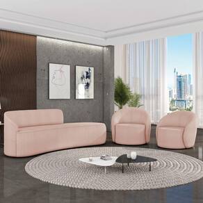 O Kit Sofá 4 Lugares Orgânico 220cm Morgan e 2 Poltronas Lua é um verdadeiro convite ao relaxamento! Ele possui um design orgânico que remete às formas encontradas na natureza que além de se moldar ao corpo humano, evoca uma sensação de calma e equilíbrio criando um espaço acolhedor e relaxante. O revestimento desse maravilhoso conjunto conta com um tecido extremamente elegante no Bouclê Rosê, suportando em média até 300 kg de peso, podendo ser utilizado por pessoas de diferentes biotipos. A Poltrona Lua contém uma simetria artística e curvas suaves, ela contém uma Base Giratória com giro em 360 graus e uma estrutura em madeira de reflorestamento eucalipto, que garante a resistência e a sustentabilidade do produto. Ela tem um acabamento reforçado e espuma de qualidade D23, que oferece maciez e conforto. Ela contém detalhes de costura no encosto e um assento cilíndrico arredondado resultando em um acabamento perfeito conferindo muito mais valor e personalizado ao produto, oferecendo maior liberdade de movimento ao cliente. O Sofá Morgan por sua vez é uma combinação perfeita de conforto e estilo. Com uma estrutura robusta de madeira de eucalipto e MDF, este sofá garante durabilidade e resistência. Os assentos e encostos são fixos, o encosto é preenchido com espuma D-20, proporcionando suporte ideal para suas costas, enquanto o assento com espuma D-23 oferece uma experiência de assento firme e aconchegante. Seu formato curvo e sem braços traz um toque de modernidade, permitindo que o sofá se encaixe harmoniosamente em diversos estilos de decoração, desde o minimalista até o mais ousado. As sapatas plásticas são pequenas proteções colocadas na base dos pés do sofá para evitar que eles risquem ou danifiquem o chão. Além de proteger o piso, essas sapatas ajudam a distribuir o peso do sofá de maneira mais uniforme. Esse lindo conjunto pode ser utilizado em salas de estar, recepções, escritórios, lojas, espaços comerciais, ou qualquer outro espaço que você queira decorar com estilo e bom gosto. O kit Sofá Morgan e 2 Poltronas Lua é um produto que vai fazer a diferença na sua decoração e no seu bem-estar. Ele vai trazer charme, conforto e durabilidade para o seu ambiente. Corra e garanta o seu agora mesmo! OBSERVAÇÃO IMPORTANTE: A entrega é realizada no endereço informado, não realizamos o transporte para andares superiores, como subir escadas, elevadores ou guinchos. Não realizamos montagens, desmontagens ou instalações. Todos esses serviços são de responsabilidade do comprador. Dimensões da Poltrona: Altura Total: 85 cm Largura Total: 91 cm Profundidade Total: 93 cm Altura do Encosto: 42 cm Largura do Assento: 62 cm Profundidade do Assento: 63 cm Altura do Assento: 40 cm Altura do chão ao Assento: 45 cm Largura do encosto: 87 cm Altura dos Pés: 5 cm Peso: 30 kg Dimensões do Sofá Altura Total: 80 cm Largura Total: 220 cm Profundidade Total: 70 cm Altura do Encosto: 40 cm Largura total livre do Assento: 220 cm Profundidade do Assento: 55 cm Altura dos Pés: 2 cm Altura do chão ao Assento: 45 cm Peso: 25 kg Especificações do Produto: Estrutura: Madeira Eucalipto Reflorestada e MDF Revestimento: Bouclê Material do Estofamento da Poltrona: D-23, Manta Acrílica e Percintas Elásticas Material do Estofamento do Sofá: Assento D-23; Encosto D-20 e Percintas Elásticas Quantidade de Lugares do Sofá : 4 Lugares Sofá Possui Braça: Não Peso Suportado: Até 300 kg Tipo de Pés: Poltrona com Base Giratória e Sapata Plástica PVC Material da Base da Poltrona: Aço Carbono Tipo de Encosto: Fixo Diferenciais: Design orgânico.Tecido de alta qualidade. Necessita de Montagem: Não Garantia: 90 dias contra defeito de fabricação Instruções de Limpeza: Utilizar um pano limpo e levemente úmido Você irá Receber: 02 Poltronas Giratória e 01 Sofá Orgânico - Entregue em: 02 Volumes