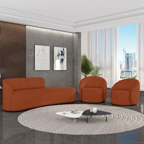 O Kit Sofá 4 Lugares Orgânico 220cm Morgan e 2 Poltronas Lua é um verdadeiro convite ao relaxamento! Ele possui um design orgânico que remete às formas encontradas na natureza que além de se moldar ao corpo humano, evoca uma sensação de calma e equilíbrio criando um espaço acolhedor e relaxante. O revestimento desse maravilhoso conjunto conta com um tecido extremamente elegante no Bouclê Terracota, suportando em média até 300 kg de peso, podendo ser utilizado por pessoas de diferentes biotipos. A Poltrona Lua contém uma simetria artística e curvas suaves, ela contém uma Base Giratória com giro em 360 graus e uma estrutura em madeira de reflorestamento eucalipto, que garante a resistência e a sustentabilidade do produto. Ela tem um acabamento reforçado e espuma de qualidade D23, que oferece maciez e conforto. Ela contém detalhes de costura no encosto e um assento cilíndrico arredondado resultando em um acabamento perfeito conferindo muito mais valor e personalizado ao produto, oferecendo maior liberdade de movimento ao cliente. O Sofá Morgan por sua vez é uma combinação perfeita de conforto e estilo. Com uma estrutura robusta de madeira de eucalipto e MDF, este sofá garante durabilidade e resistência. Os assentos e encostos são fixos, o encosto é preenchido com espuma D-20, proporcionando suporte ideal para suas costas, enquanto o assento com espuma D-23 oferece uma experiência de assento firme e aconchegante. Seu formato curvo e sem braços traz um toque de modernidade, permitindo que o sofá se encaixe harmoniosamente em diversos estilos de decoração, desde o minimalista até o mais ousado. As sapatas plásticas são pequenas proteções colocadas na base dos pés do sofá para evitar que eles risquem ou danifiquem o chão. Além de proteger o piso, essas sapatas ajudam a distribuir o peso do sofá de maneira mais uniforme. Esse lindo conjunto pode ser utilizado em salas de estar, recepções, escritórios, lojas, espaços comerciais, ou qualquer outro espaço que você queira decorar com estilo e bom gosto. O kit Sofá Morgan e 2 Poltronas Lua é um produto que vai fazer a diferença na sua decoração e no seu bem-estar. Ele vai trazer charme, conforto e durabilidade para o seu ambiente. Corra e garanta o seu agora mesmo!