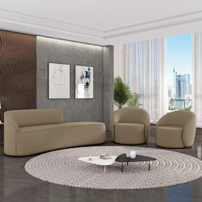 O Kit Sofá 4 Lugares Orgânico 220cm Morgan e 2 Poltronas Lua é um verdadeiro convite ao relaxamento! Ele possui um design orgânico que remete às formas encontradas na natureza que além de se moldar ao corpo humano, evoca uma sensação de calma e equilíbrio criando um espaço acolhedor e relaxante. O revestimento desse maravilhoso conjunto conta com um tecido extremamente elegante no Suede Marrom Rato, suportando em média até 300 kg de peso, podendo ser utilizado por pessoas de diferentes biotipos. A Poltrona Lua contém uma simetria artística e curvas suaves, ela contém uma Base Giratória com giro em 360 graus e uma estrutura em madeira de reflorestamento eucalipto, que garante a resistência e a sustentabilidade do produto. Ela tem um acabamento reforçado e espuma de qualidade D23, que oferece maciez e conforto. Ela contém detalhes de costura no encosto e um assento cilíndrico arredondado resultando em um acabamento perfeito conferindo muito mais valor e personalizado ao produto, oferecendo maior liberdade de movimento ao cliente. O Sofá Morgan por sua vez é uma combinação perfeita de conforto e estilo. Com uma estrutura robusta de madeira de eucalipto e MDF, este sofá garante durabilidade e resistência. Os assentos e encostos são fixos, o encosto é preenchido com espuma D-20, proporcionando suporte ideal para suas costas, enquanto o assento com espuma D-23 oferece uma experiência de assento firme e aconchegante. Seu formato curvo e sem braços traz um toque de modernidade, permitindo que o sofá se encaixe harmoniosamente em diversos estilos de decoração, desde o minimalista até o mais ousado. As sapatas plásticas são pequenas proteções colocadas na base dos pés do sofá para evitar que eles risquem ou danifiquem o chão. Além de proteger o piso, essas sapatas ajudam a distribuir o peso do sofá de maneira mais uniforme. Esse lindo conjunto pode ser utilizado em salas de estar, recepções, escritórios, lojas, espaços comerciais, ou qualquer outro espaço que você queira decorar com estilo e bom gosto. O kit Sofá Morgan e 2 Poltronas Lua é um produto que vai fazer a diferença na sua decoração e no seu bem-estar. Ele vai trazer charme, conforto e durabilidade para o seu ambiente. Corra e garanta o seu agora mesmo! OBSERVAÇÃO IMPORTANTE: A entrega é realizada no endereço informado, não realizamos o transporte para andares superiores, como subir escadas, elevadores ou guinchos. Não realizamos montagens, desmontagens ou instalações. Todos esses serviços são de responsabilidade do comprador. Dimensões da Poltrona: Altura Total: 85 cm Largura Total: 91 cm Profundidade Total: 93 cm Altura do Encosto: 42 cm Largura do Assento: 62 cm Profundidade do Assento: 63 cm Altura do Assento: 40 cm Altura do chão ao Assento: 45 cm Largura do encosto: 87 cm Altura dos Pés: 5 cm Peso: 30 kg Dimensões do Sofá Altura Total: 80 cm Largura Total: 220 cm Profundidade Total: 70 cm Altura do Encosto: 40 cm Largura total livre do Assento: 220 cm Profundidade do Assento: 55 cm Altura dos Pés: 2 cm Altura do chão ao Assento: 45 cm Peso: 25 kg Especificações do Produto: Estrutura: Madeira Eucalipto Reflorestada e MDF Revestimento: Suede Material do Estofamento da Poltrona: D-23, Manta Acrílica e Percintas Elásticas Material do Estofamento do Sofá: Assento D-23; Encosto D-20 e Percintas Elásticas Quantidade de Lugares do Sofá : 4 Lugares Sofá Possui Braça: Não Peso Suportado: Até 300 kg Tipo de Pés: Poltrona com Base Giratória e Sapata Plástica PVC Material da Base da Poltrona: Aço Carbono Tipo de Encosto: Fixo Diferenciais: Design orgânico.Tecido de alta qualidade. Necessita de Montagem: Não Garantia: 90 dias contra defeito de fabricação Instruções de Limpeza: Utilizar um pano limpo e levemente úmido Você irá Receber: 02 Poltronas Giratória e 01 Sofá Orgânico - Entregue em: 02 Volumes
