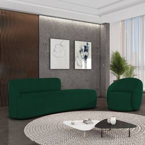 Sofá 4 Lugares Orgânico 220cm Morgan e Poltrona Lua Bouclê D03 - D`Rossi - Verde
