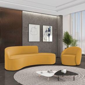 O Kit Sofá 2 Lugares Orgânico 220cm Morgan e Poltrona Lua é um verdadeiro convite ao relaxamento! Ele possui um design orgânico que remete às formas encontradas na natureza que além de se moldar ao corpo humano, evoca uma sensação de calma e equilíbrio criando um espaço acolhedor e relaxante. O revestimento desse maravilhoso conjunto conta com um tecido extremamente elegante no Veludo Mostarda, suportando em média até 120 kg de peso, podendo ser utilizado por pessoas de diferentes biotipos. A Poltrona Lua contém uma simetria artística e curvas suaves, ela contém uma Base Giratória com giro em 360 graus e uma estrutura em madeira de reflorestamento eucalipto, que garante a resistência e a sustentabilidade do produto. Ela tem um acabamento reforçado e espuma de qualidade D23, que oferece maciez e conforto. Ela contém detalhes de costura no encosto e um assento cilíndrico arredondado resultando em um acabamento perfeito conferindo muito mais valor e personalizado ao produto, oferecendo maior liberdade de movimento ao cliente. O Sofá Morgan por sua vez é uma combinação perfeita de conforto e estilo. Com uma estrutura robusta de madeira de eucalipto e MDF, este sofá garante durabilidade e resistência. Os assentos e encostos são fixos, o encosto é preenchido com espuma D-20, proporcionando suporte ideal para suas costas, enquanto o assento com espuma D-23 oferece uma experiência de assento firme e aconchegante. Seu formato curvo e sem braços traz um toque de modernidade, permitindo que o sofá se encaixe harmoniosamente em diversos estilos de decoração, desde o minimalista até o mais ousado. As sapatas plásticas são pequenas proteções colocadas na base dos pés do sofá para evitar que eles risquem ou danifiquem o chão. Além de proteger o piso, essas sapatas ajudam a distribuir o peso do sofá de maneira mais uniforme. Esse lindo conjunto pode ser utilizado em salas de estar, recepções, escritórios, lojas, espaços comerciais, ou qualquer outro espaço que você queira decorar com estilo e bom gosto. O kit Sofá Morgan e Poltrona Lua é um produto que vai fazer a diferença na sua decoração e no seu bem-estar. Ele vai trazer charme, conforto e durabilidade para o seu ambiente. Corra e garanta a sua agora mesmo!