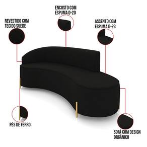 O Sofá 4 Lugares Orgânico Morgan de 220 cm, é a combinação perfeita de conforto e estilo. Com uma estrutura robusta de madeira de eucalipto e MDF, este sofá garante durabilidade e resistência. Os assentos e encostos são fixos, o encosto é preenchido com espuma D-20, proporcionando suporte ideal para suas costas, enquanto o assento com espuma D-23 oferece uma experiência de assento firme e aconchegante. O design orgânico remete às formas encontradas na natureza como ondas, folhas ou conchas que além de se moldarem ao corpo humano, evocam uma sensação de calma e equilíbrio. Seu formato curvo e sem braços traz um toque de modernidade, permitindo que o sofá se encaixe harmoniosamente em diversos estilos de decoração, desde o minimalista até o mais ousado. A fluidez das linhas cria um ambiente acolhedor e convidativo, perfeito para qualquer ocasião. Os pés de ferro, além de fornecerem estabilidade, trazem um toque industrial que contrasta lindamente com o elegante revestimento em Suede na sofisticada cor Preto. Seja para receber amigos, relaxar após um dia longo ou simplesmente adicionar um toque de elegância ao seu lar, o Sofá Orgânico é a escolha ideal. Não perca a oportunidade de elevar a decoração da sua casa com esta peça única. Adquira já o seu e descubra o que é conforto e estilo em um só lugar!