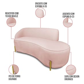 O Sofá 4 Lugares Orgânico Morgan de 220 cm, é a combinação perfeita de conforto e estilo. Com uma estrutura robusta de madeira de eucalipto e MDF, este sofá garante durabilidade e resistência. Os assentos e encostos são fixos, o encosto é preenchido com espuma D-20, proporcionando suporte ideal para suas costas, enquanto o assento com espuma D-23 oferece uma experiência de assento firme e aconchegante. O design orgânico remete às formas encontradas na natureza como ondas, folhas ou conchas que além de se moldarem ao corpo humano, evocam uma sensação de calma e equilíbrio. Seu formato curvo e sem braços traz um toque de modernidade, permitindo que o sofá se encaixe harmoniosamente em diversos estilos de decoração, desde o minimalista até o mais ousado. A fluidez das linhas cria um ambiente acolhedor e convidativo, perfeito para qualquer ocasião. Os pés de ferro, além de fornecerem estabilidade, trazem um toque industrial que contrasta lindamente com o elegante revestimento em Bouclê na sofisticada cor Rosê. Seja para receber amigos, relaxar após um dia longo ou simplesmente adicionar um toque de elegância ao seu lar, o Sofá Orgânico é a escolha ideal. Não perca a oportunidade de elevar a decoração da sua casa com esta peça única. Adquira já o seu e descubra o que é conforto e estilo em um só lugar!