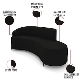 O Sofá 4 Lugares Orgânico Morgan de 220 cm, é a combinação perfeita de conforto e estilo. Com uma estrutura robusta de madeira de eucalipto e MDF, este sofá garante durabilidade e resistência. Os assentos e encostos são fixos, o encosto é preenchido com espuma D-20, proporcionando suporte ideal para suas costas, enquanto o assento com espuma D-23 oferece uma experiência de assento firme e aconchegante. O design orgânico remete às formas encontradas na natureza como ondas, folhas ou conchas que além de se moldarem ao corpo humano, evocam uma sensação de calma e equilíbrio. Seu formato curvo e sem braços traz um toque de modernidade, permitindo que o sofá se encaixe harmoniosamente em diversos estilos de decoração, desde o minimalista até o mais ousado. A fluidez das linhas cria um ambiente acolhedor e convidativo, perfeito para qualquer ocasião. Os pés de ferro, além de fornecerem estabilidade, trazem um toque industrial que contrasta lindamente com o elegante revestimento em Veludo na sofisticada cor Preto. Seja para receber amigos, relaxar após um dia longo ou simplesmente adicionar um toque de elegância ao seu lar, o Sofá Orgânico é a escolha ideal. Não perca a oportunidade de elevar a decoração da sua casa com esta peça única. Adquira já o seu e descubra o que é conforto e estilo em um só lugar!