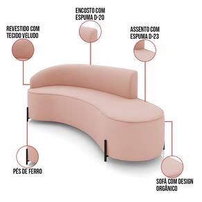 O Sofá 4 Lugares Orgânico Morgan de 220 cm, é a combinação perfeita de conforto e estilo. Com uma estrutura robusta de madeira de eucalipto e MDF, este sofá garante durabilidade e resistência. Os assentos e encostos são fixos, o encosto é preenchido com espuma D-20, proporcionando suporte ideal para suas costas, enquanto o assento com espuma D-23 oferece uma experiência de assento firme e aconchegante. O design orgânico remete às formas encontradas na natureza como ondas, folhas ou conchas que além de se moldarem ao corpo humano, evocam uma sensação de calma e equilíbrio. Seu formato curvo e sem braços traz um toque de modernidade, permitindo que o sofá se encaixe harmoniosamente em diversos estilos de decoração, desde o minimalista até o mais ousado. A fluidez das linhas cria um ambiente acolhedor e convidativo, perfeito para qualquer ocasião. Os pés de ferro, além de fornecerem estabilidade, trazem um toque industrial que contrasta lindamente com o elegante revestimento em Veludo na sofisticada cor Rosê. Seja para receber amigos, relaxar após um dia longo ou simplesmente adicionar um toque de elegância ao seu lar, o Sofá Orgânico é a escolha ideal. Não perca a oportunidade de elevar a decoração da sua casa com esta peça única. Adquira já o seu e descubra o que é conforto e estilo em um só lugar!