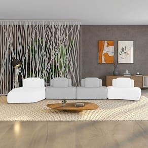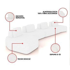 Estrutura: Madeira de Eucalipto; Reforços com cantoneiras e chapas em MDF. Enchimento: Fibra siliconada, espuma D-33. Revestimento: Bouclê. Pés: Madeira.Vendido e entregue por WebContinental